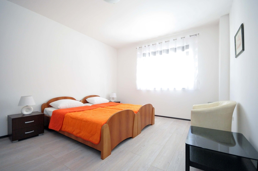 veš mašina). Spavaća soba je opremljena sa dva singl kreveta, noćni ormarići, veliki plakar, prozorpogled