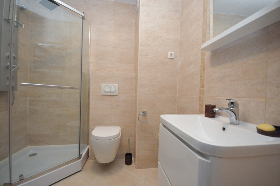 U stanu je prostran hodnik opremljen ormaricem i ogledalom, sa desne strane je kupatilo (tus kabina,