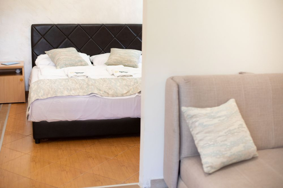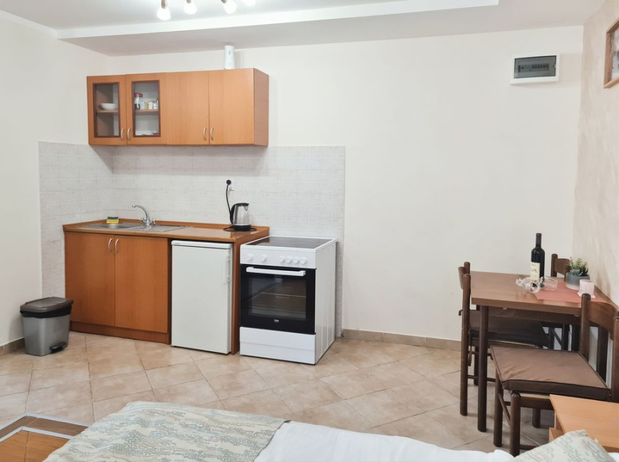 Dvokrevetni studio sa francuskim ležajem i pomoćnom foteljom na razvlačenje, smješten u prizemlju sa pogledom na prostrano dvorište, na samo nekoliko metara od...