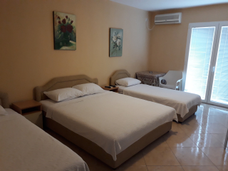 Sadržaj apartmana: kupatilo, kuhinja sa posuđem i frižiderom, jedan francuski i dva pojedinačna ležaja, klima uređaj, kablovska TV,