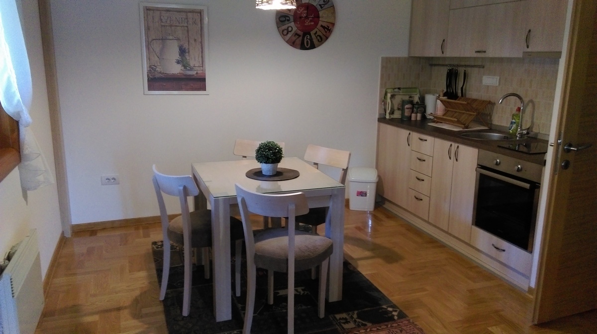 Apartman Bubica se nalazi na 10-ak minuta prijatne šetnje od centra Zlatibora, u Ulici breza. Diskretno je ušuškan u četinarskom okruženju i tišini i nudi vam mogućnost izuzetnog odmora, a kasnije svakako i odbrojavanje dana do ponovnog susreta. Naša Bubica velikog srca i široke duše, učiniće sve da vam se njene odaje dopadnu, da uživate u njenim čarima, da vaš prvi susret sa njom bude nezaboravan. Već sama spoljašnjost objekta govori više od reči. Predivna zgrada planinskog stila je okružena zelenilom, tj. travnjakom i mnoštvom četinarskog drveća, koji obezbeđuju maksimalno uživanje za sve generacije, naročito tokom letnjih dana. Iza zgrade se nalazi ozidan roštilj sa letnjikovcem uz koji će prolećna i letnja druženja biti pravo uživanje. Popločan parking, noću osvetljen, pristupačan je samo za naše goste. Po ulasku u apartman sa leve strane se nalazi svetla spavaća soba u modernom planinskom stilu, sa francuskim ležajem, američkim plakarom i kablovskim LCD TV.Nasuprot spavaće sobe je kupatilo sa tuš kabinom i WC. Pravo hodnikom je dnevni boravak sa trpezarijom i kuhinjom, moderno opremljenom sa svim pratećim sadržajima. Dnevni boravak odiše toplinom koju daje skriveno ambijetalno svetlo, a drvene zidne obloge daju poseban doživljaj planinskog ambijanta. Dnevni boravak je opremljen ugaonom garniturom na razvlačenje, kablovskim LED 3D smart TV, kućnim bioskopom i wi-fi. Iz dnevne sobe se izlazi na prostranu terasu sa pogledom na borov park i zlatiborsku panoramu. Terasa je potpuno obložena drvenim oblogama i čini pravu konkurenciju dnevnom boravku i dvorišnom letnjikovcu. Mogućnosti za uživanje su tu...Apartman Bubica je sa svojih 40 m², podnim grejanjem i ambijentalnim osvetljenjem koje se reguliše daljinskim upravljačem potpuno opremljen za ugodan boravak do 4 osobe .