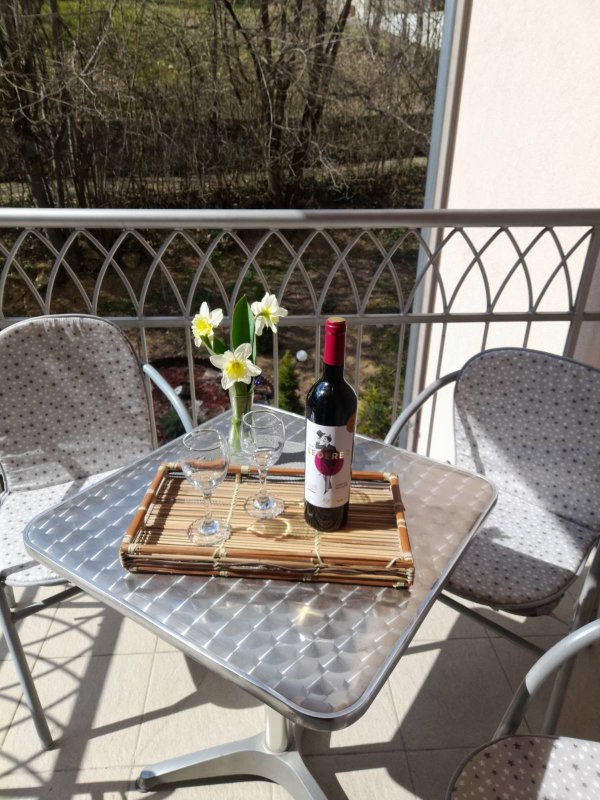 Apartman poseduje i sopstveno kupatilo i komfornu terasu. Osim osnovnih sadržaja, apartman je opremljen sa 2 TV uređaja sa kablovskom televizijom, bežičnim internetom, klima uređajem+inverter klima uređajem, frižiderom, mikrotalasnom, ravnom grejnom pločom sa dve ringle i ketlerom.
